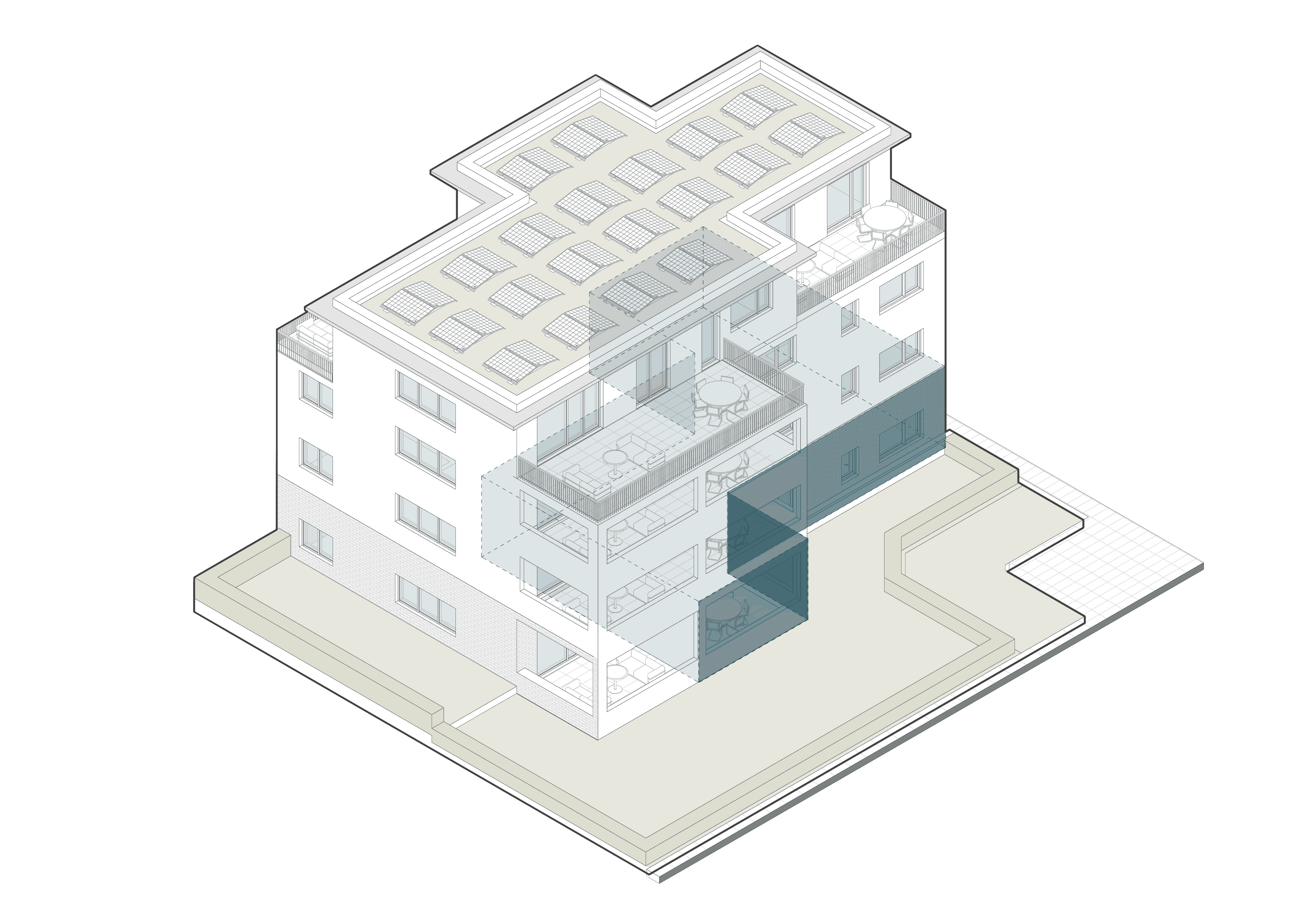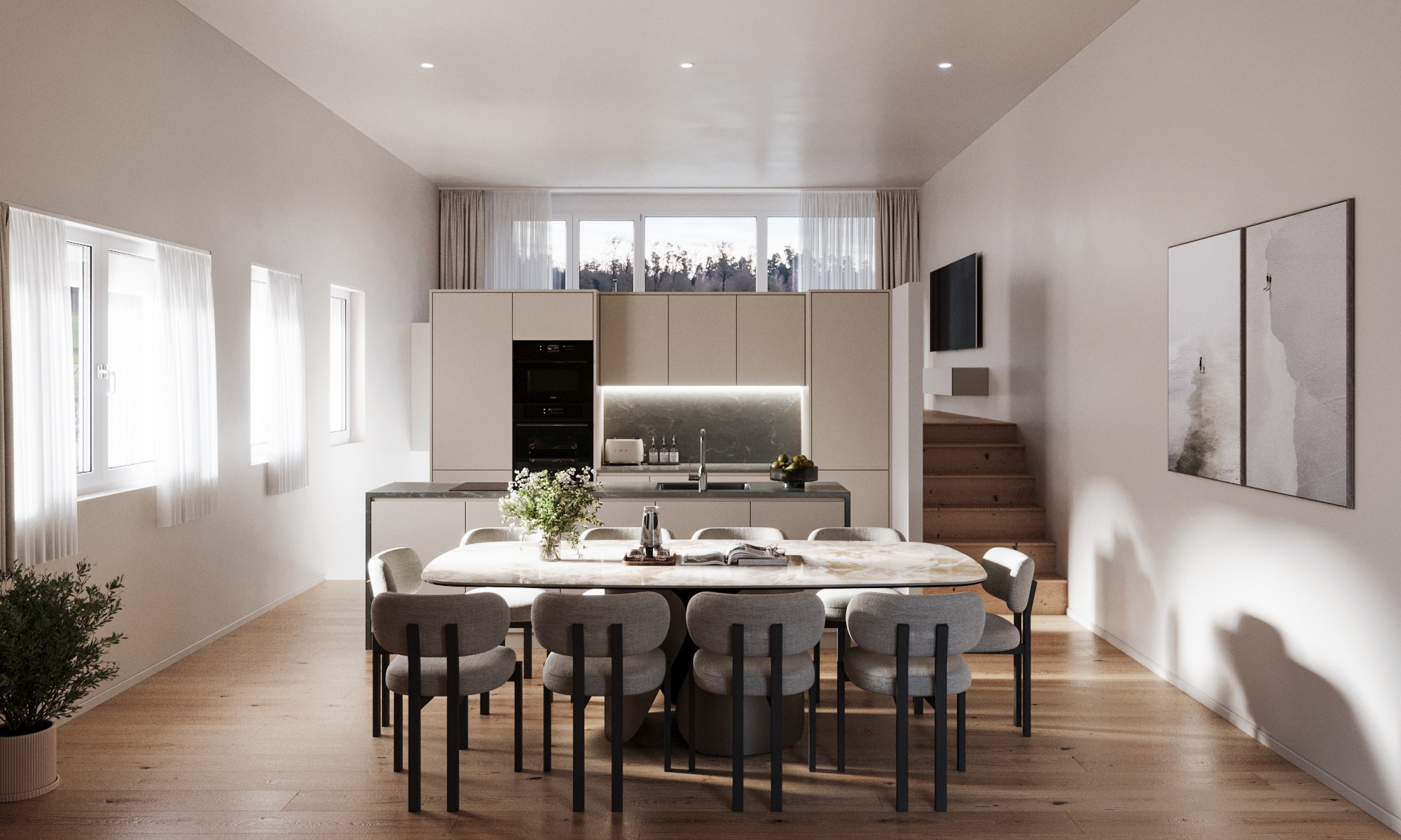 Die Architektur des Projekts in Höri zeichnet sich durch eine klare, zeitlose Formensprache aus. Ruhig gegliederte Baukörper und eine zurückhaltende Gestaltung sorgen für ein stimmiges Gesamtbild und eine harmonische Einbindung in das Umfeld.